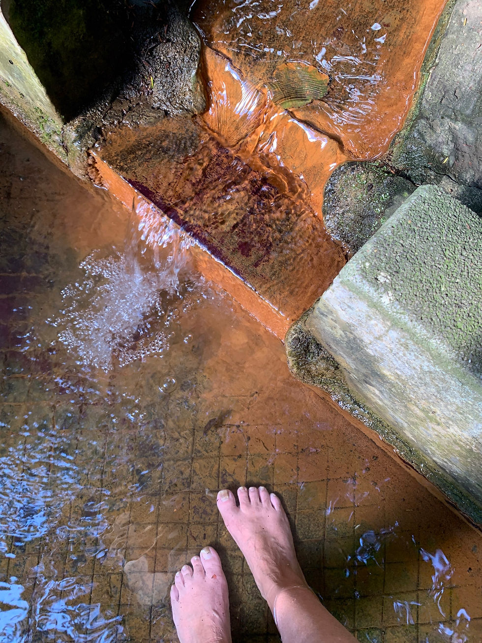 I completed my trip at the White Spring, filled my water bottle and watched naked people bathing in the spring. Lucky it was dark. The energy was palpable in there. Was I hallucinating? On to the Chalice Well (long associated with healing properties) where I filled another bottle with pure chalice spring water from a lions head tap, went to the King Arthur court healing pool (18th century) bathed my feet in the red iron water (which you can’t drink) and meditated. It was enormously powerful at the well.